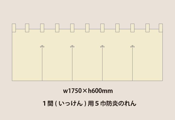 1間(いっけん)用の5巾(いつはば)防炎のれんです。カラーは6種類。